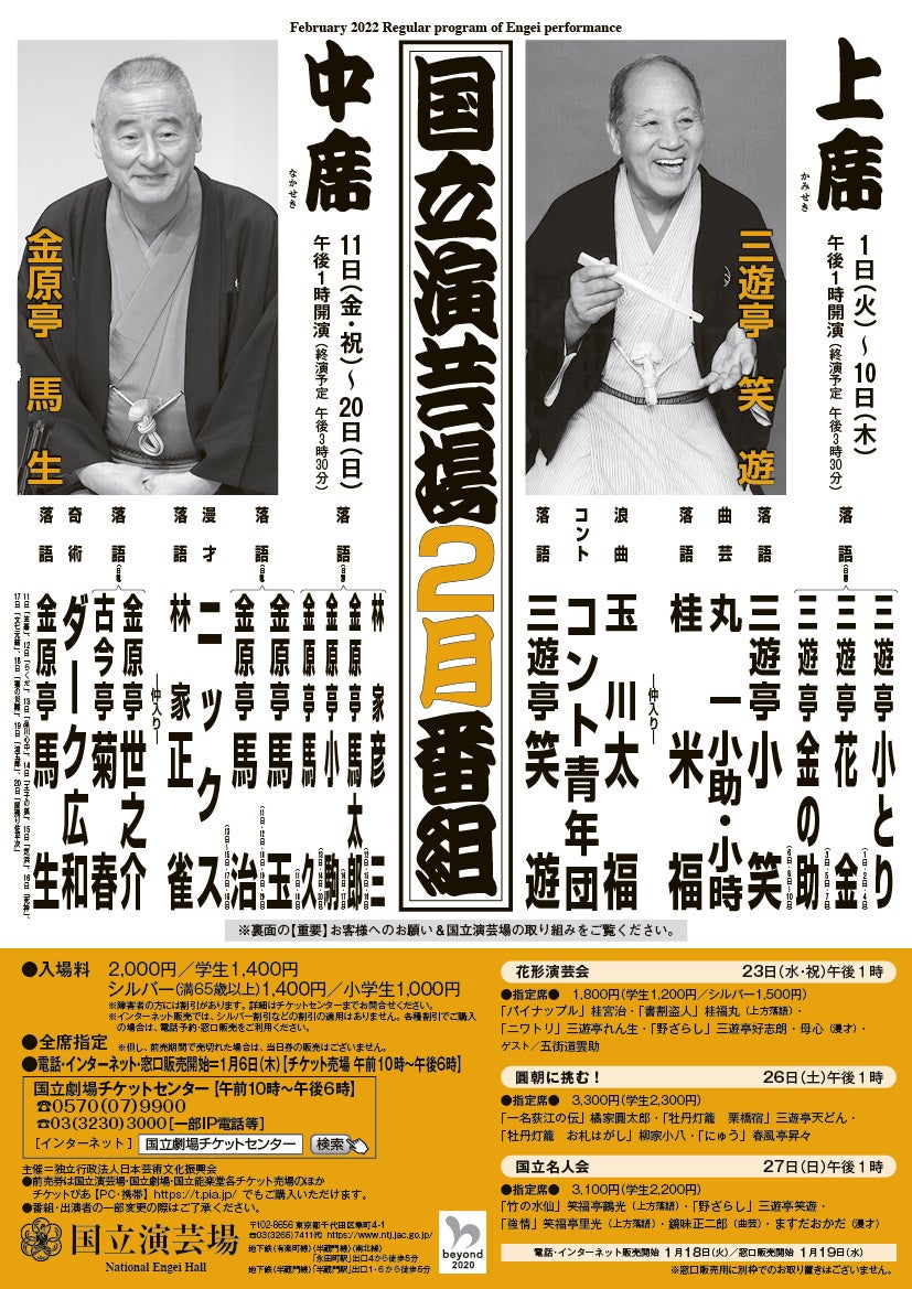 国立演芸場令和4年2月中席 番組発表 カンフェティで限定割引チケット発売