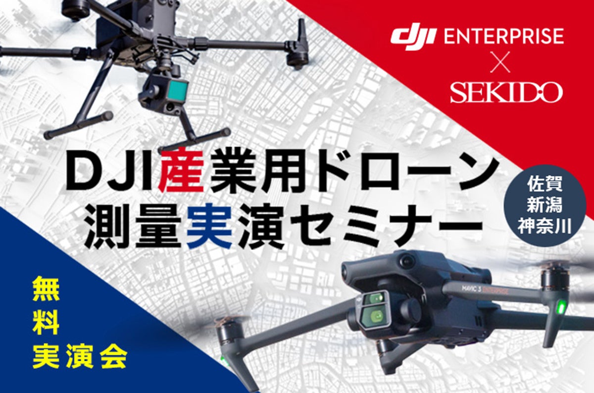 DJI(ディージェイアイ)正規販売代理店としてドローンビジネスの最先端を支える株式会社セキド(本社:東京都港区、代表取締役:⼤下貴之)では、2025年1月23日(木)に佐賀県多久市で、29日(水)に新潟県上越市、31日(金)に神奈川県横浜市にて、ドローンを使った測量業務に特化した無料実演会「DJI産業用ドローン 測量実演セミナー」を開催いたします。DJIの産業用フラッグシップドローンと対応する新型LiDARモジュールやカメラ、小型写真測量用ドローンに加え、ハンディ3DスキャナーやGNSSローバーの性能が確認できる実演会です。測量現場を模したデモフライトでは、実際の撮影データもご覧いただけるほか、補助金・助成金を活用した導入事例についてもご紹介します。既に多くの方にご参加いただいている好評の実演会ですので、ぜひお気軽にご参加ください。