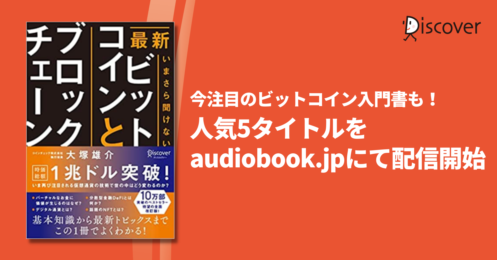 株式会社ディスカヴァー・トゥエンティワン(本社:東京都千代田区、取締役社長:谷口奈緒美)は2022年4月に、『最新 いまさら聞けないビットコインとブロックチェーン』他4点のオーディオブックをaudiobook.jpで配信開始しました。
