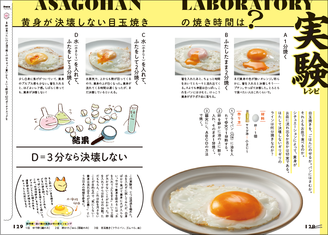 「黄身が決壊しない目玉焼きの焼き時間は?」「納豆は何回混ぜるとおいしい?」など、朝ごはんメニューをより美味しくするためのギモンを徹底研究!