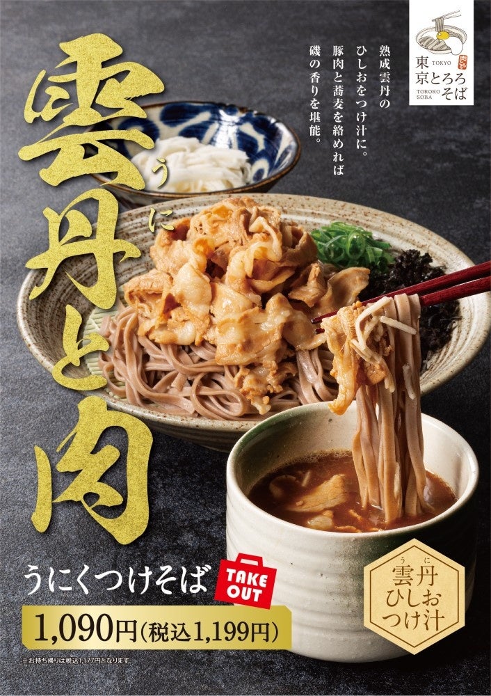 【雲丹と肉】熟成雲丹のひしおをつけ汁に豚肉と蕎麦を絡める「うにくつけそば」東京とろろそばに新登場!!