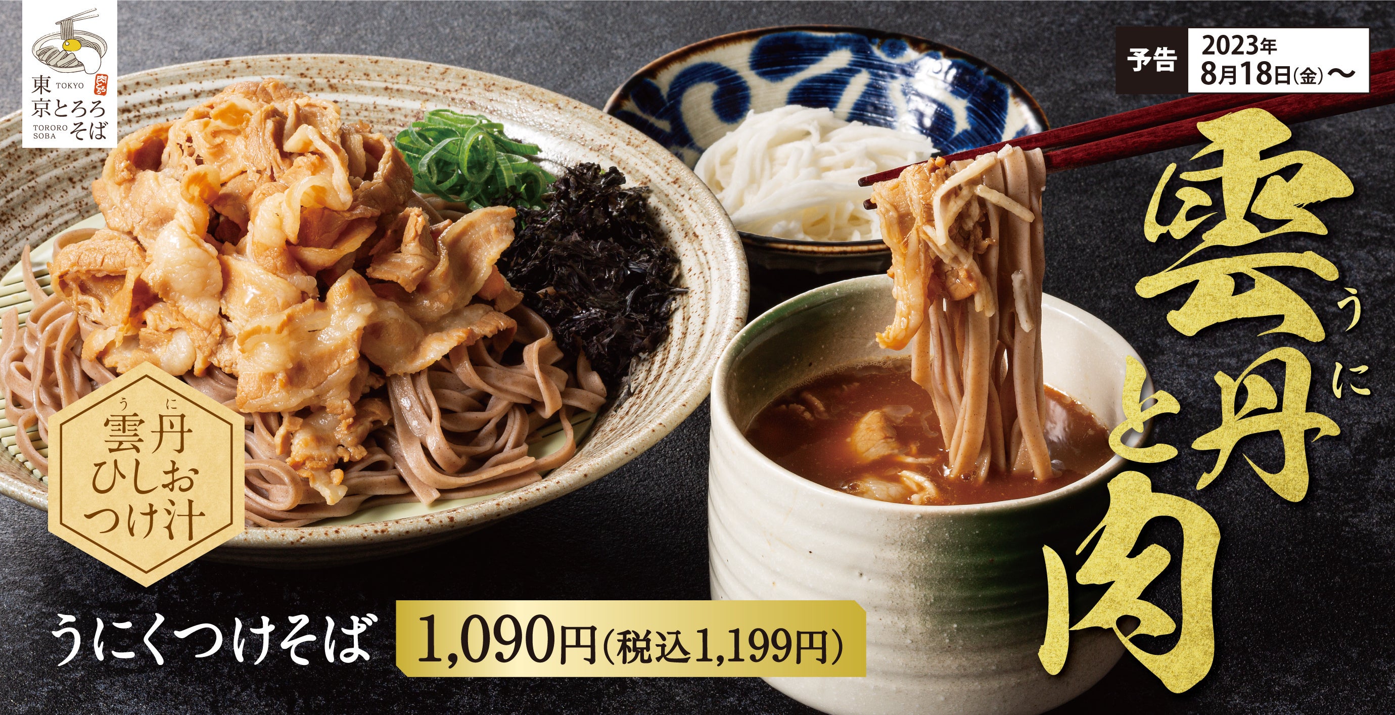 千切りとろろののどごしを楽しむ、とろろそば専門店「東京とろろそば」で2人に1人が選ぶつけそばシリーズの季節限定メニュー「うにくつけそば」を2023年8月18日(金)より季節限定メニューとして販売を開始いたします。