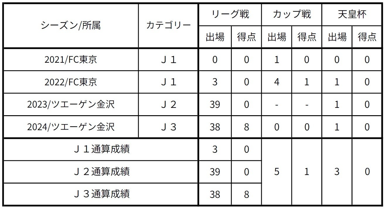 └2023- ツエーゲン金沢※育成型期限付き移籍