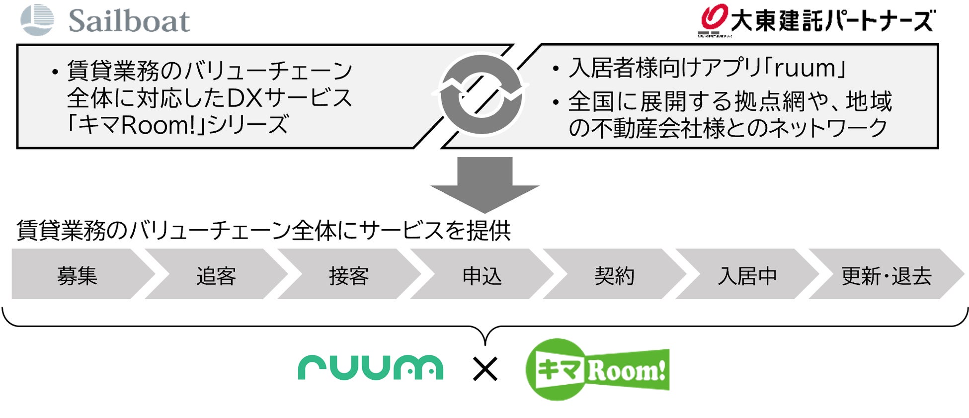 大東建託グループの大東建託パートナーズ株式会社(本社:東京都港区、代表取締役社長:佐藤功次、以下、 大東建託パートナーズ)は、2月17日、不動産会社向けのシステム開発を手がける株式会社セイルボート(本社:広島県広島市、代表取締役:西野量、以下、セイルボート)の発行済み全株式を取得し、子会社化しましたのでお知らせします。