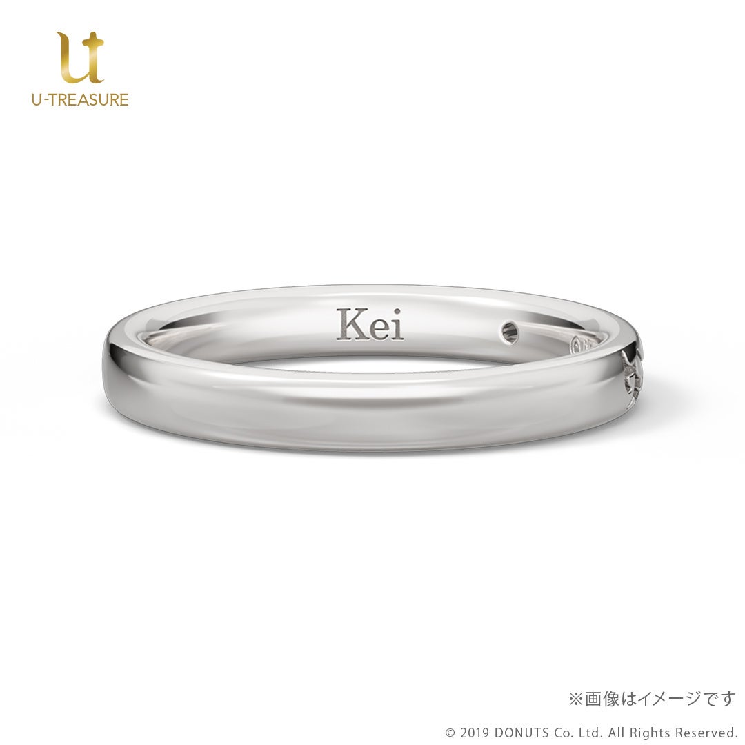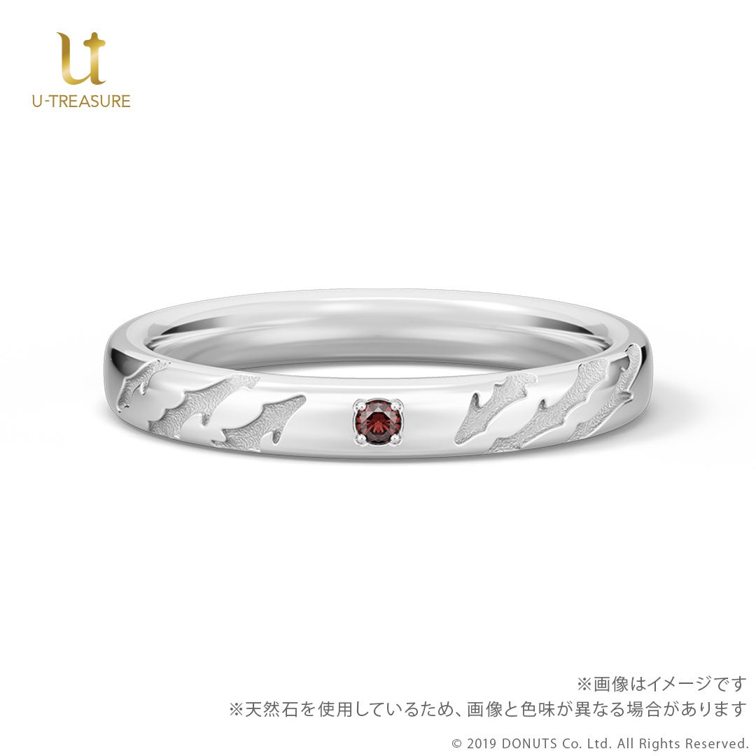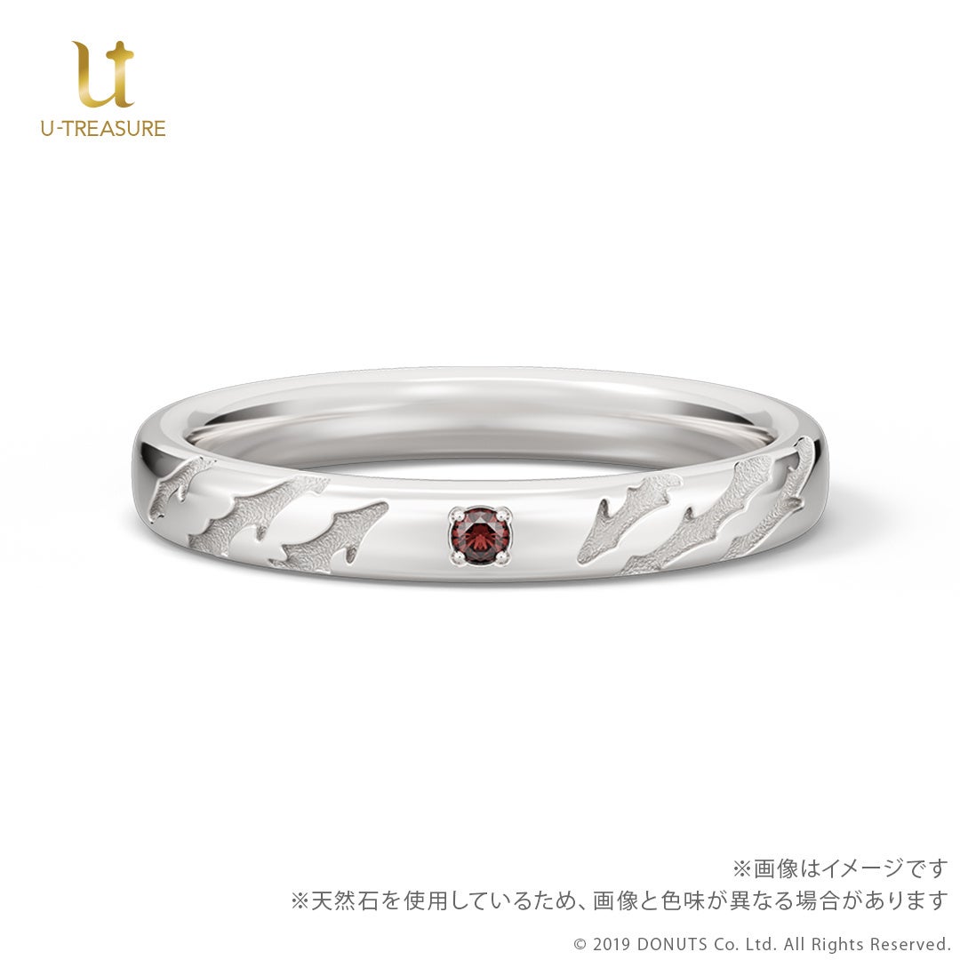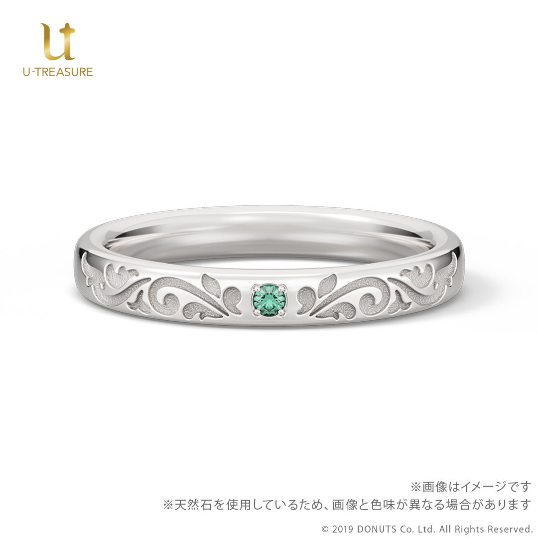 このたびの新作は、『ブラックスター -Theater Starless-』のキャストをモチーフにしたリング(指輪)です。中央にキャストをイメージした天然石を留め、内側には名前を刻印したデザインです。