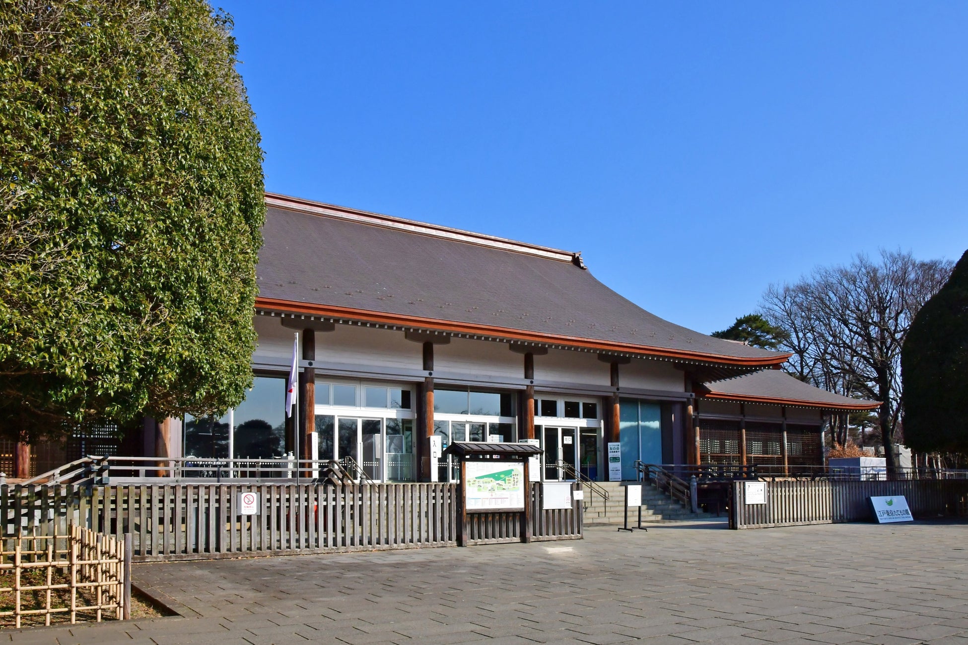 当園が建設される以前、この地には原始・古代から近・現代に至る武蔵野のあゆみをテーマにした博物館「武蔵野郷土館」がありました。この郷土館は1991年(平成3)に博物館活動を終えましたが、収蔵していた復元建造物をはじめ考古・民俗・歴史・美術・図書などの多くの貴重な資料は当園が引き継ぎ、整理・保存を行いながら、随時公開を続けてきました。