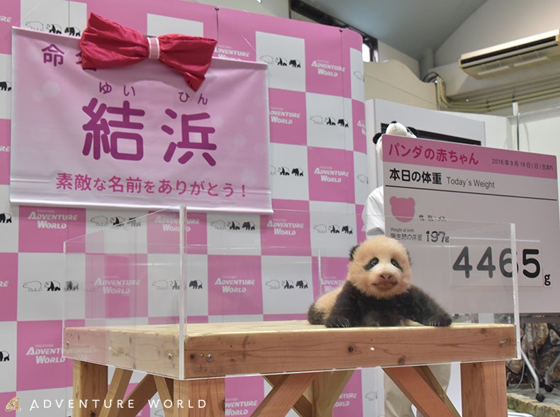 名前募集期間の2016年10月 1 日~11月30日の61日間に、56,565通のご応募をいただきました。「パンダの赤ちゃん命名委員会」に よる厳正な審査の結果、2016年12月6日の命名セレモニーにおいて、「結浜」に決定いたしました。