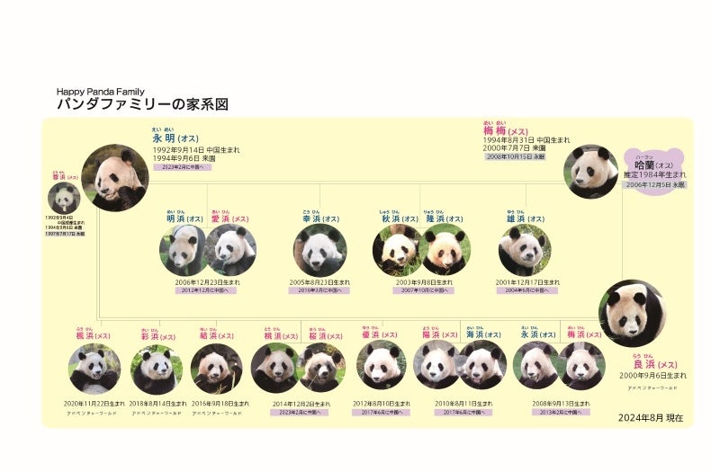 おかげさまで、30年の共同繁殖研究により、アドベンチャーワールドでは17頭のパンダの育成に成功し、そのうち13頭が中国で新たなパートナーに出会い20頭以上の子孫が誕生、パンダファミリーの繁栄の輪が広がっています。