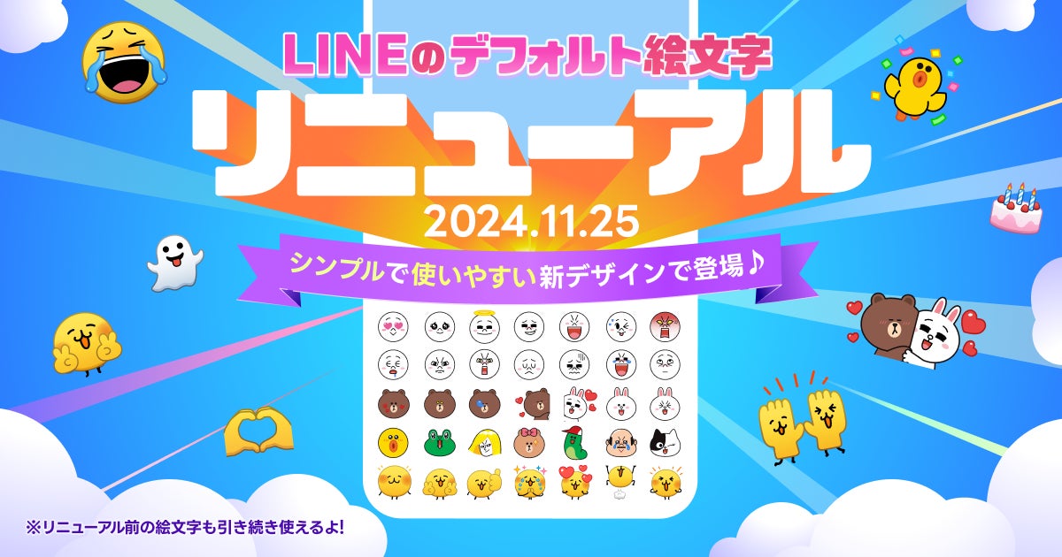 LINEヤフー株式会社(以下、LINEヤフー)は、コミュニケーションアプリ「LINE」のトークルームで使用できるデフォルトのLINE絵文字を、11月25日(月)より順次リニューアルします。デフォルトで提供しているLINE絵文字のリニューアルは7年ぶりです。