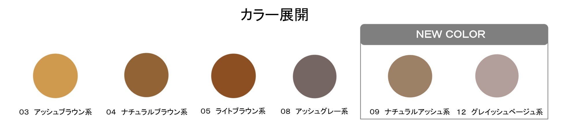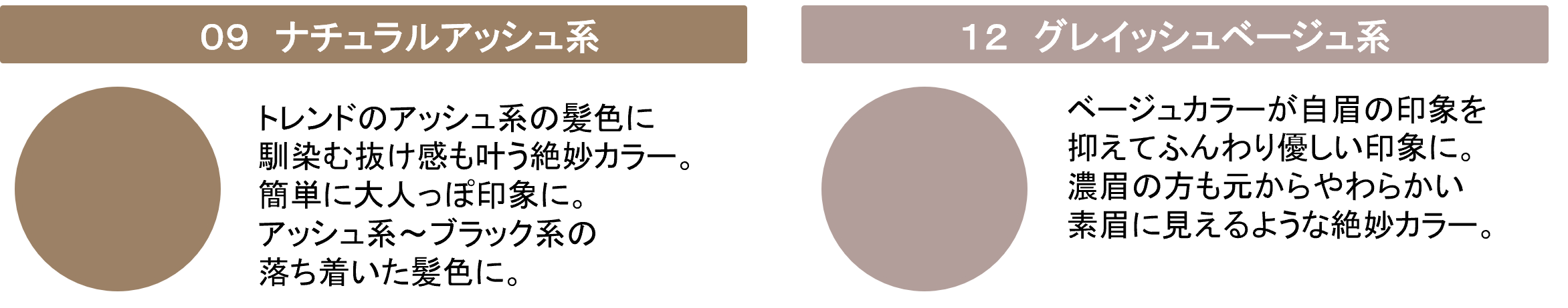ヘビーローテーションの大人気アイテム「カラーリングアイブロウ」の人気色と対応したカラー展開で、合わせ使いすることで、あか抜け眉を演出します。