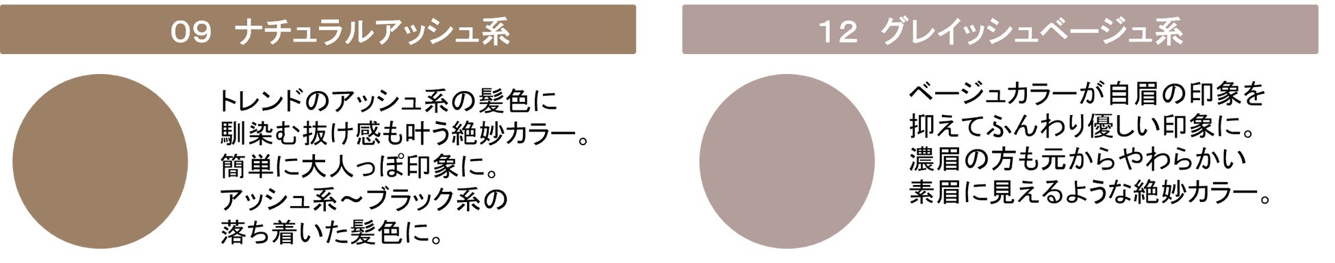 簡単にナチュふわ眉が叶うと人気のアイブロウペンシルから、アッシュ系の髪色や暗髪、黒髪に合わせやすいカラーが新登場。
