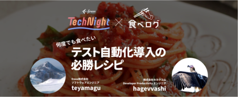 今回はfreee Tech Night × 食べログ 「〜何度でも食べたい〜テスト自動化導入の必勝レシピ」