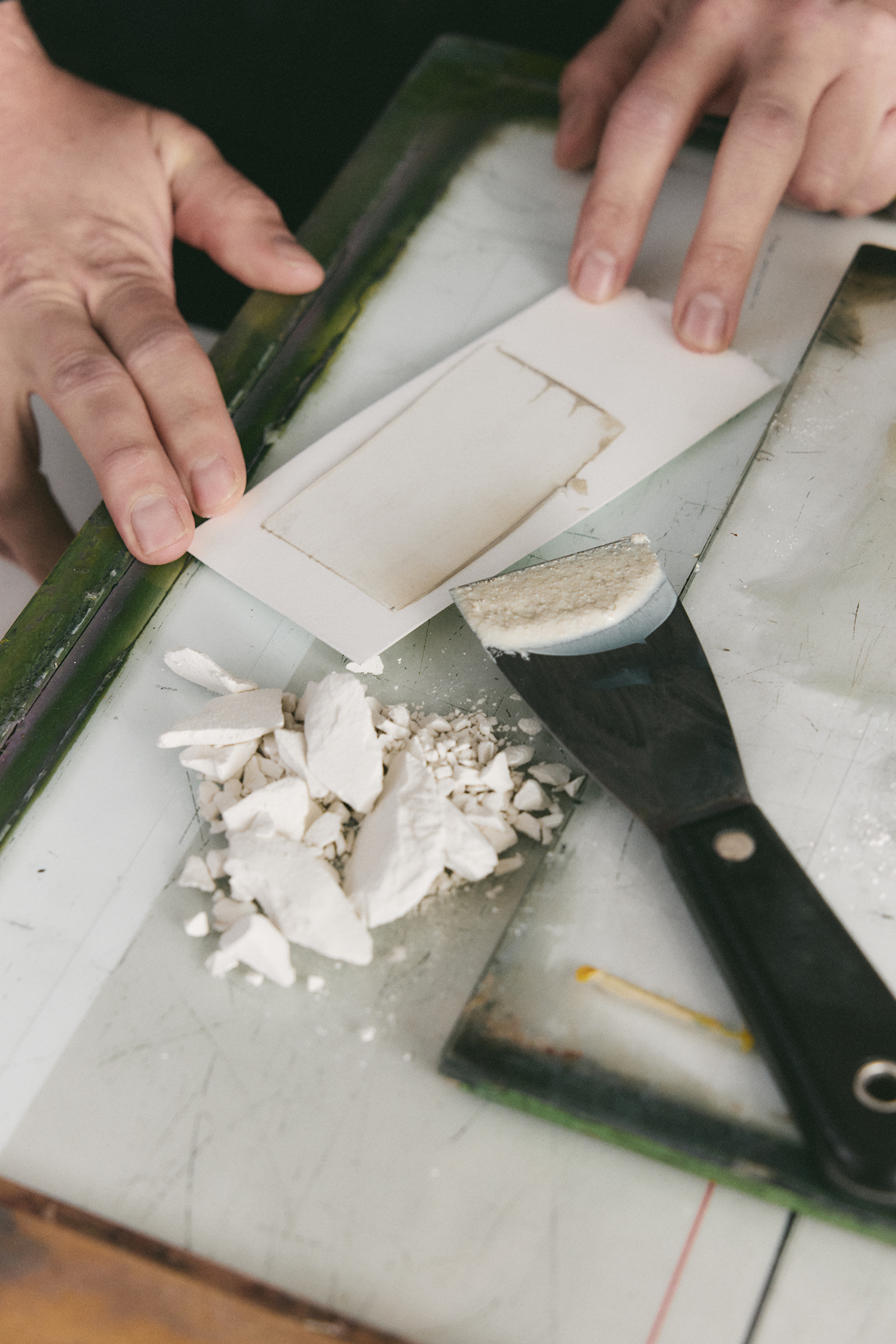「ルイナールのメゾンの歴史と、テロワールの深いつながりに強く惹かれました。ランスという歴史的な土地や、何百万年にもわたる地質学的歴史の証といえるルイナールのクレイエール(白亜質の地下セラー)は、かつてこの地域が海であった痕跡であり、当時の無数の海洋生物の遺骸によって形成されています。その事実を知ったとき、私が探求してきた『ディープタイム』という概念と響き合い、現在も進行する地質学的プロセスや生態系の変容を作品で表現したいと強く思いました。」