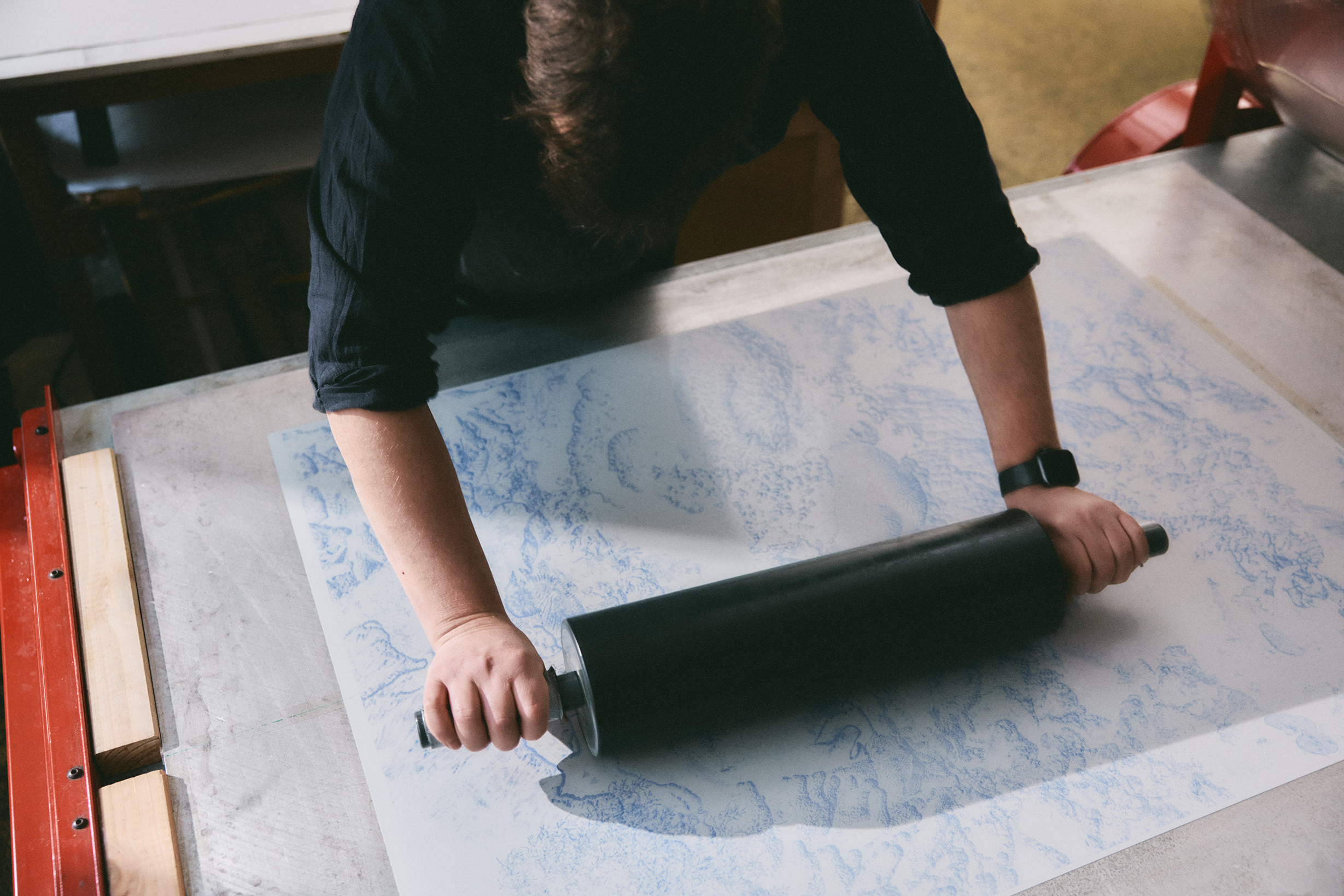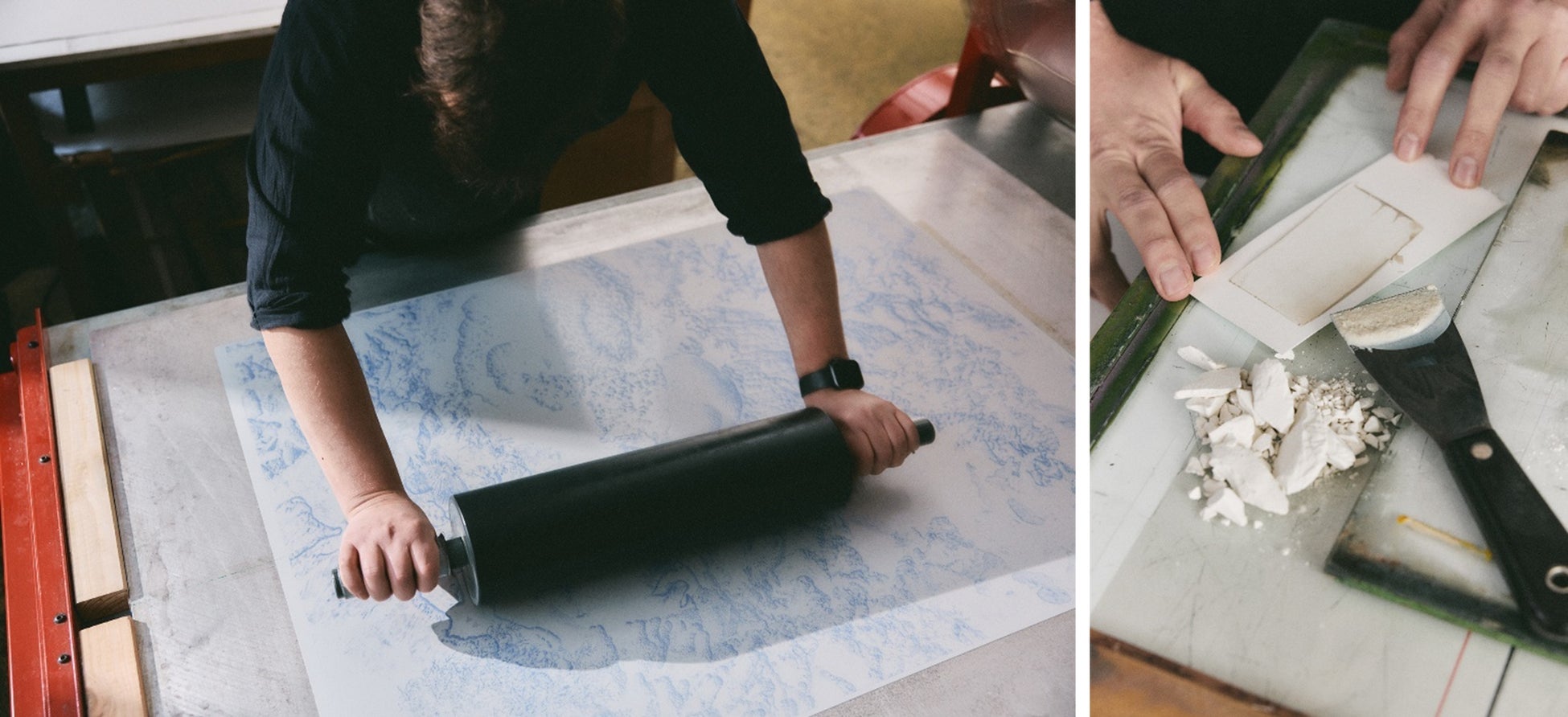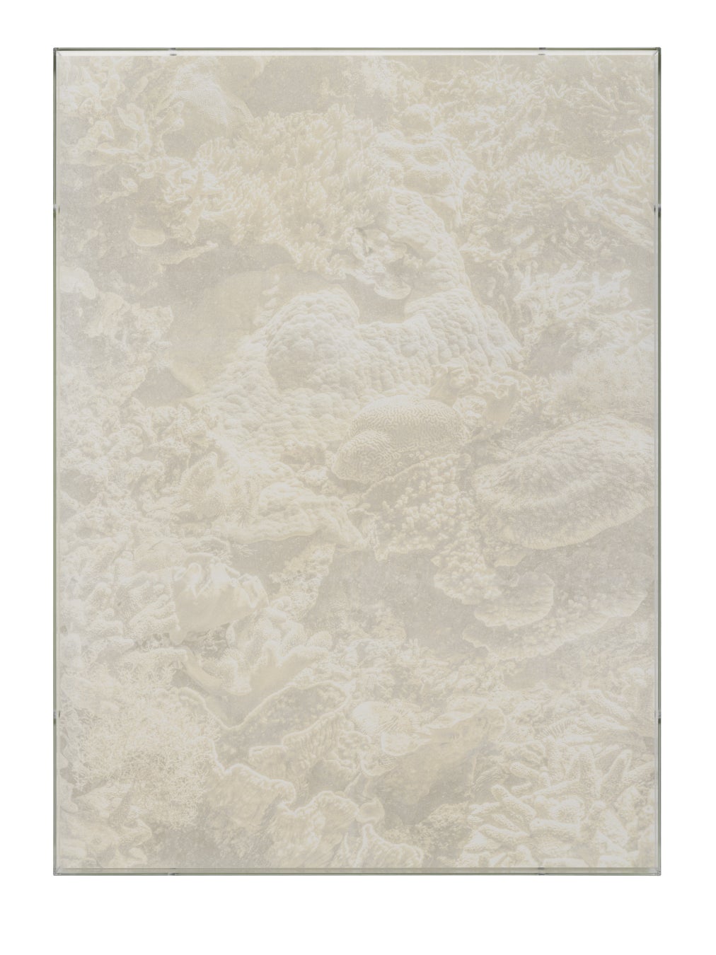 作品は、クレイエールのチョークの壁に眠る化石のささやきを呼び覚ますかのような体験型のサウンド・インスタレーションをはじめ、世界各地のサンゴ礁を撮影したデジタル画像を色分解し、白亜・石灰岩・サンゴ由来の顔料で再解釈した版画作品で構成されます。19世紀のリトグラフ技法を参照し石灰石版に像を浮かび上がらせることで、地質学的時間と現代の海の脆さを一枚の作品に凝縮。淡く漂白されたような色調は、保存と喪失の狭間にある儚さを象徴しています。