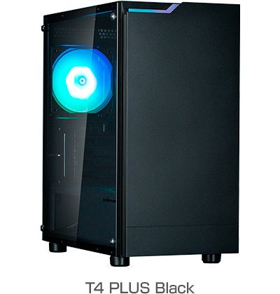 「T4 PLUS」は、シンプルなフロントパネルにフロントLEDを搭載したミニタワー型PCケースです。全面強化ガラス製のサイドパネルで内部を見せやすいデザインとなっており、リアにはアドレサブルRGBファンを標準搭載しています。コンパクトなミニタワー型ながら最大7基の120mmファンを搭載可能で、高い冷却ポテンシャルも備えています。