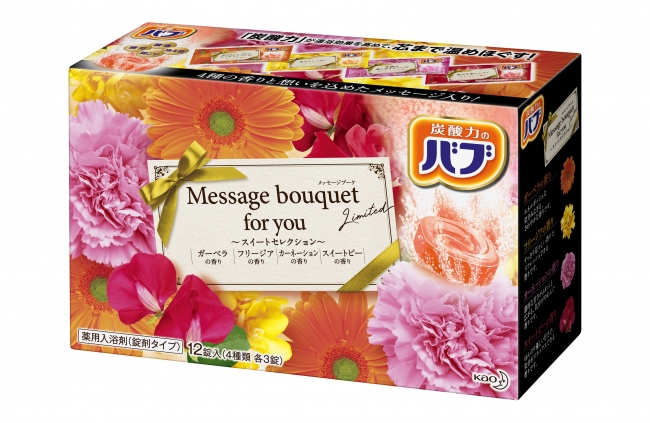 一言メッセージ入り、ブーケをイメージした花の香りの入浴剤。炭酸の薬用入浴剤 花王バブより、3月9日(土)「Message bouquet for you」新発売【数量限定】