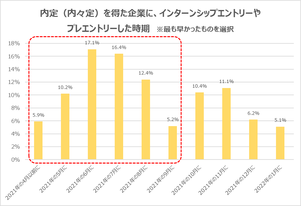 1月時点で内々定を得ている学生の6割以上は「8月まで」に内々定先の企業にエントリー。最終面接を受けた時期は「2021年12月」「2022年1月」が最多。早期化が顕著に/2023年卒対象アンケート