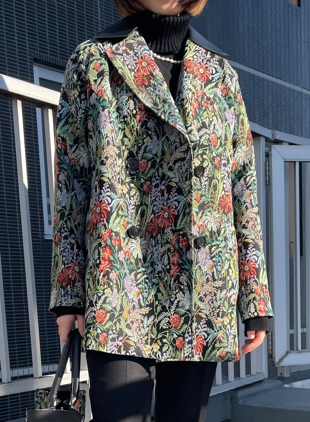 - ゴブラン織りならではのハリや立体感のある柄表現を持ちながらも、着るとフワッと軽い体感が新鮮です。