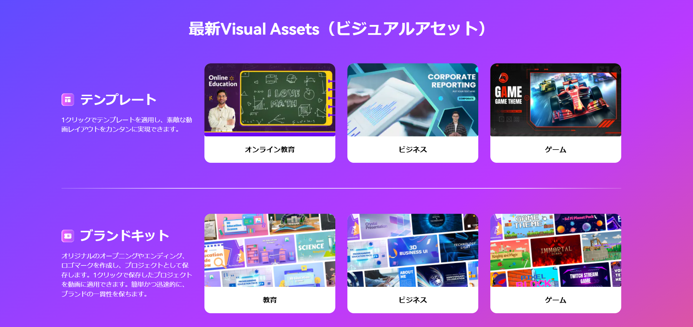 テンプレートなど動画制作に使える素材「ビジュアルアセット」が、既存の30,000+からおよそ2倍近く(50,000+)に増え、資料を作成するにおいてより魅力的な仕上がりを手伝いします。