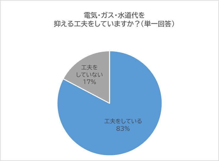 電気代・ガス代・水道代を抑える工夫をしているかについて尋ねたところ、8割以上の方が「工夫をしている」と回答しました。