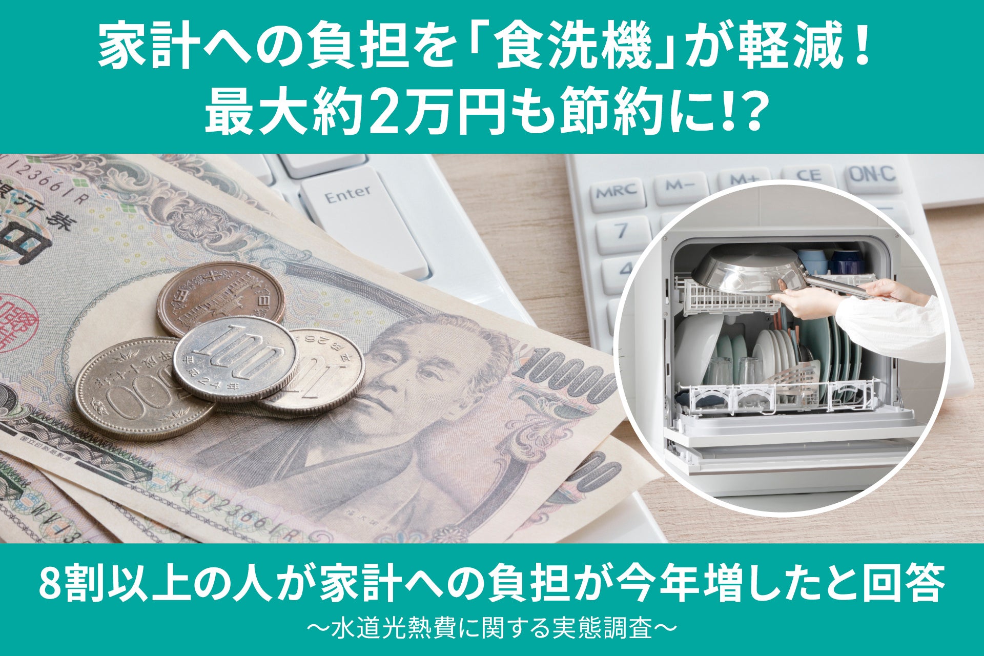 家計への負担を「食洗機」が軽減!最大2万円も節約に!?8割以上の人が家計への負担が今年増したと回答~水道光熱費に関する実態調査~