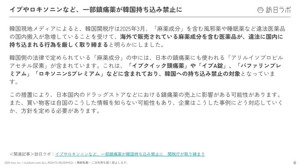 韓国でイブ・ロキソニンなど鎮痛薬が一部持ち込み禁止に:観光・インバウンドの最新動向がわかる!インバウンド情報まとめ「2025年4月後編」を訪日ラボが公開