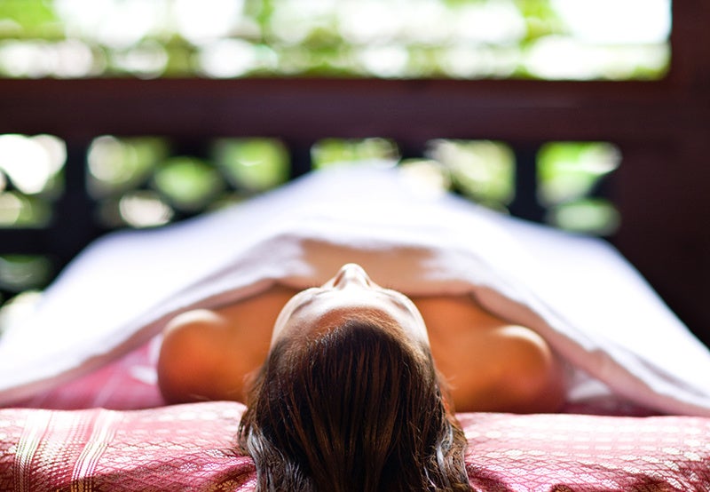フットバスで足を温め、老廃物の排出を促すミネラルオイルのマッサージで身体の深部をほぐします。レモンの約2倍と言われるビタミンC豊富なグァバのボディパックで、全身を保湿。頭皮と頭髪のケアの後は、屋外のテラスバスでゆったり温浴。最後にグァバ茶をご用意いたします。