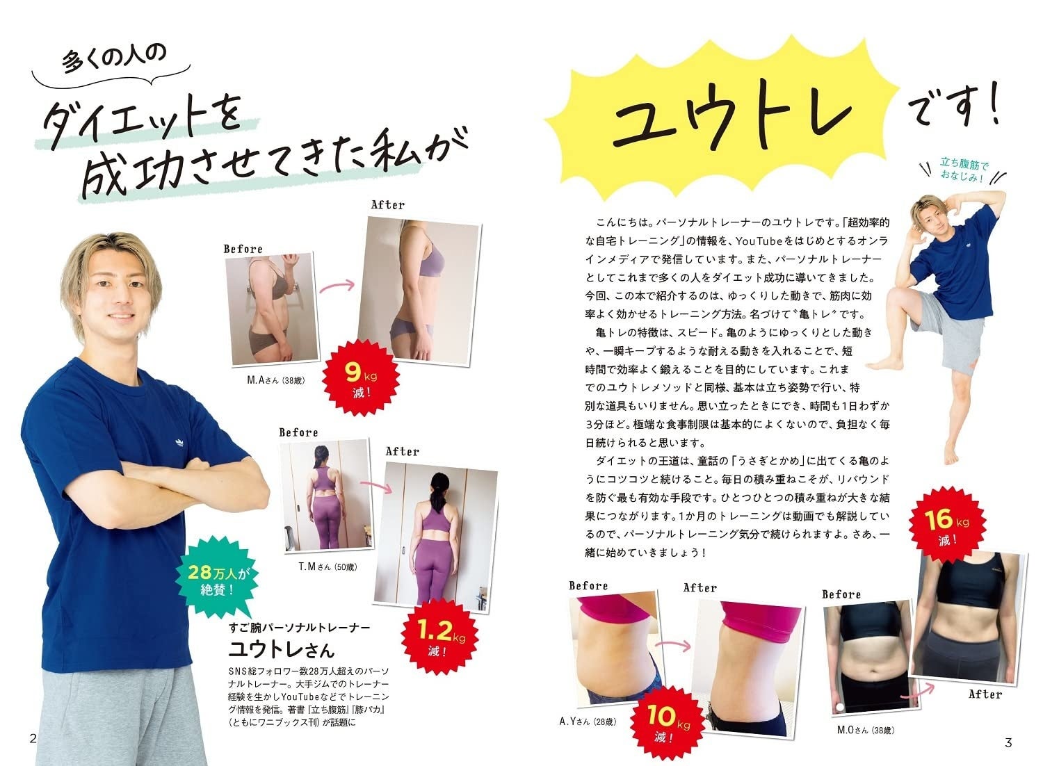 SNS総フォロワー数28万人、YouTube総再生回数2000万回超え! 超カリスマパーソナルトレーナー・ユウトレさんが生み出した亀のようにゆっくり動くだけでOKのズボラトレーニング『リバウンドなし! 1日3分でやせる亀トレ』を1月9日(日)に発売いたしました。https://www.amazon.co.jp/dp/4594090532
