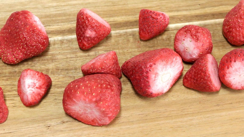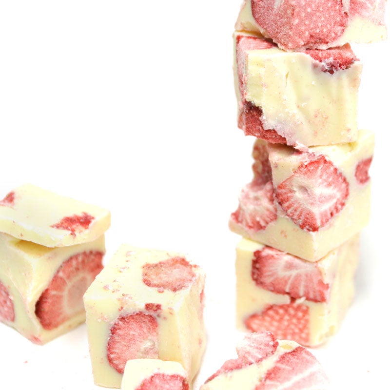 不揃いで出荷できないいちごをフリーズドライ化し、未利用で上質素材のホワイトチョコレートと合わせた。あえて形を活かし、メッセージ性のあるスイーツとして商品化。