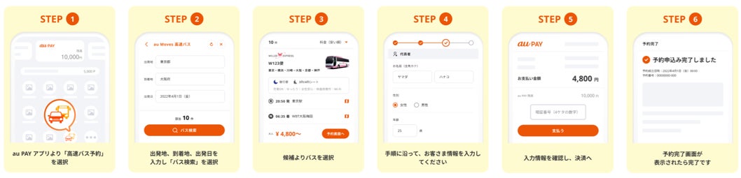 高速バスの検索・予約・決済・予約照会・キャンセル登録などの一連のお手続きをau PAY アプリ上で完結することが可能です。auに限らずスマートフォン・タブレットをお持ちのすべての方にご利用いただけます。決済方法は、au PAY(ネット支払い)となります。