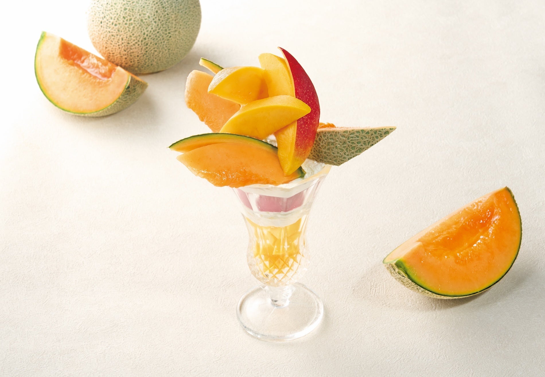 【果実屋珈琲】旬果実「北海道産赤肉メロンと甘熟マンゴーのパフェ」を販売開始