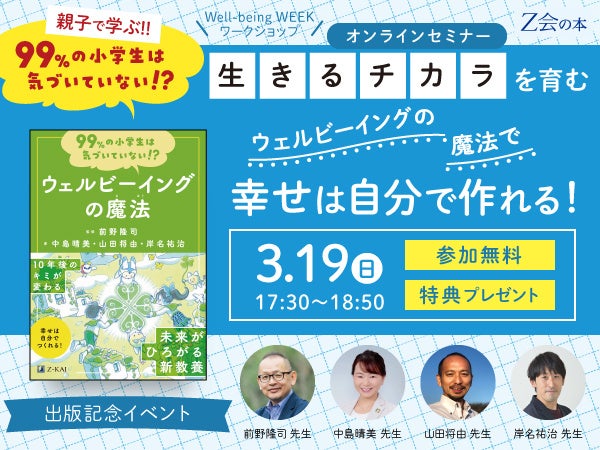 【Z会の本】3/19(日)開催「書籍出版記念!ウェルビーイングの魔法で幸せは自分で作れる!」オンラインセミナー申込開始!【参加費無料】