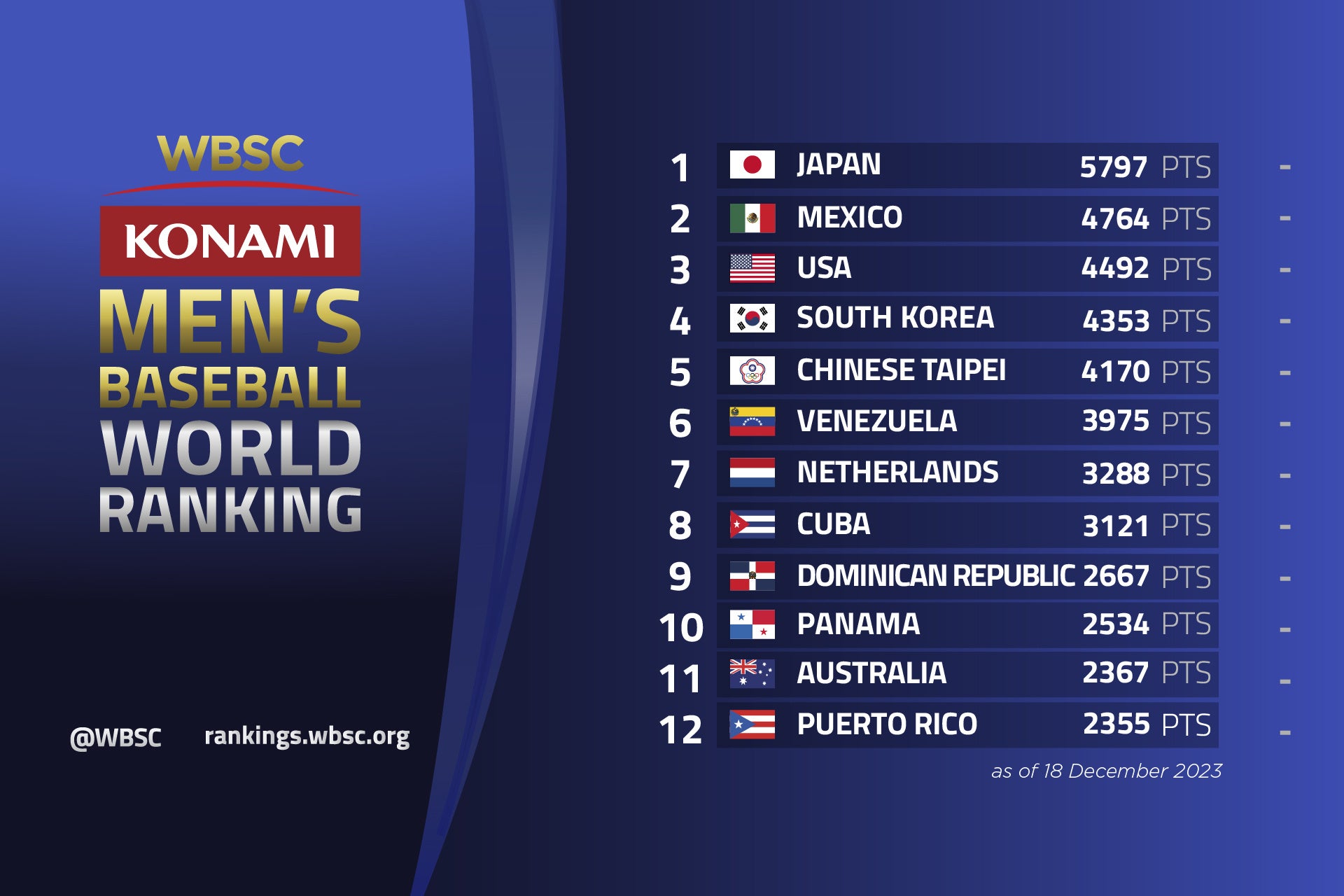 WBSC/KONAMI世界ランキング (https://rankings.wbsc.org/ja)