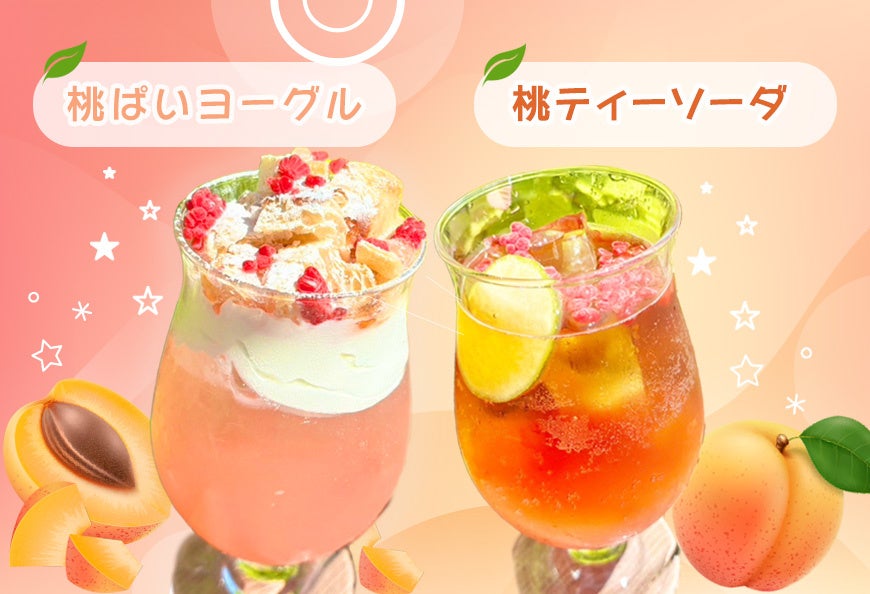 桃ティーとソーダを合わせた新感覚のドリンクに仕上げました!