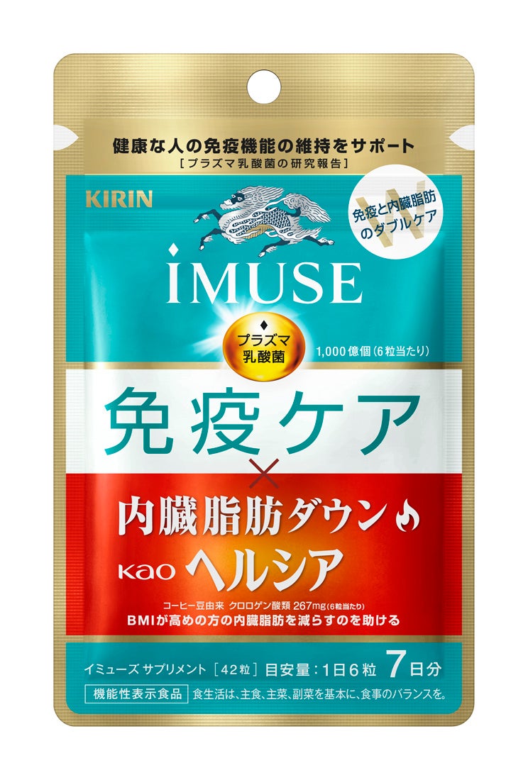 免疫ケアブランド「キリン iMUSE」と内臓脂肪ケアブランド「ヘルシア」の、特別なダブルケア商品