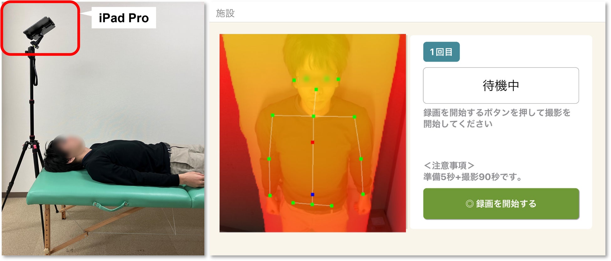 計測から可視化までタブレット端末(iPad Pro)1台で実現できるため、自宅や店舗などスペースが限られた環境でも利用可能です。また立位や座位など異なる姿勢や、着衣のままでも計測可能です。