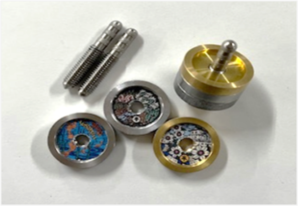 マンホールコマは、近年盛り上がりを見せている、全国の金属加工業者などが自慢の技術で作った直径2センチメートル、高さ6センチメートル以内の自作のこまを土俵上で戦わせる「全日本製造業コマ大戦」の基準に則って作られていて、コマ博士としてテレビなどに出演する東京科学大学の山崎(崎=たつさき)詩郎先生が監修した金属コマキット「ちばコマキット」をベースに企画。重さの異なる真ちゅう、アルミニウム、ステンレスの3種の金属でできたドーナッツ状の部品の並びを決めて、そこに先の尖った軸か丸い軸のどちらかを通すことで、回転の安定性や持続性が異なるこまが完成するというもの。金属部品の配置によりこまの重心位置が変わるため、こまで遊ぶ子どもたちは金属部品と軸の組み合わせを考えながら「どの組み合わせが最も回りやすいか」を体験的に学ぶことができます。こまの表面には摂津峡・高槻城・安満遺跡公園をイメージした市内のデザインマンホール蓋に加え、令和6年度から高槻市で開始した民間事業者によるマンホール広告のデザインを施し、こまを回す土俵にもマンホール蓋のデザインを採用。土俵の下に敷くプレイマットにはマンホールの下に繋がっている下水道の仕組みや下水道を守る職員の働く姿を描き、遊び方を記載したルールブックにも下水道などの豆知識などを掲載するなど、「こま遊び」と「マンホール」が見事に融合しています。