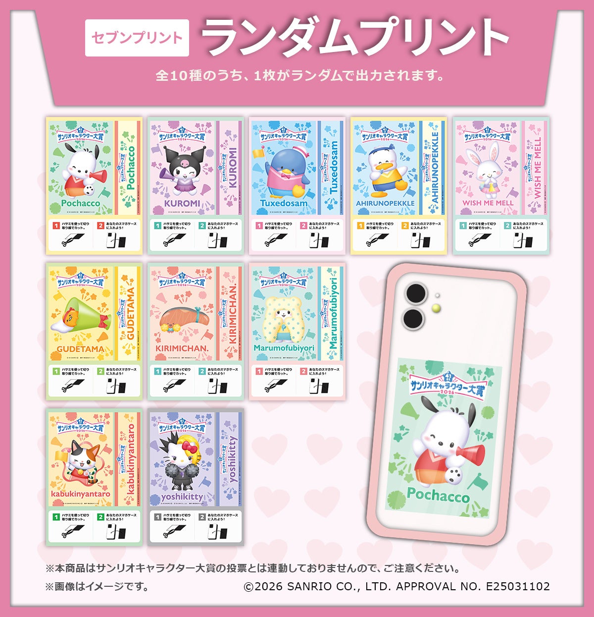 株式会社セブン‐イレブン・ジャパン(本社:東京都千代田区、代表取締役社長:阿久津 知洋)は、株式会社サンリオが開催するサンリオキャラクターの人気投票イベント「2026年サンリオキャラクター大賞」のデザインを使用した「サンリオキャラクターズ 2026ランダムスマホカード」の第3弾を4月23日(木)より、全国のセブン‐イレブンのマルチコピー機にて販売しております。ぜひこの機会にセブン‐イレブンで「サンリオキャラクターズ 2026ランダムスマホカード」を手に入れてください!