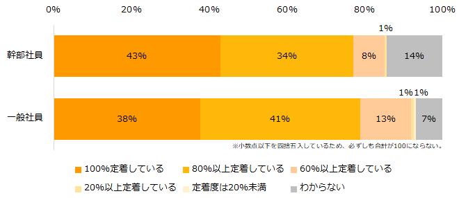 【図1】ミドル人材における入社後の定着度はどの程度ですか?(幹部社員、一般社員比較)
