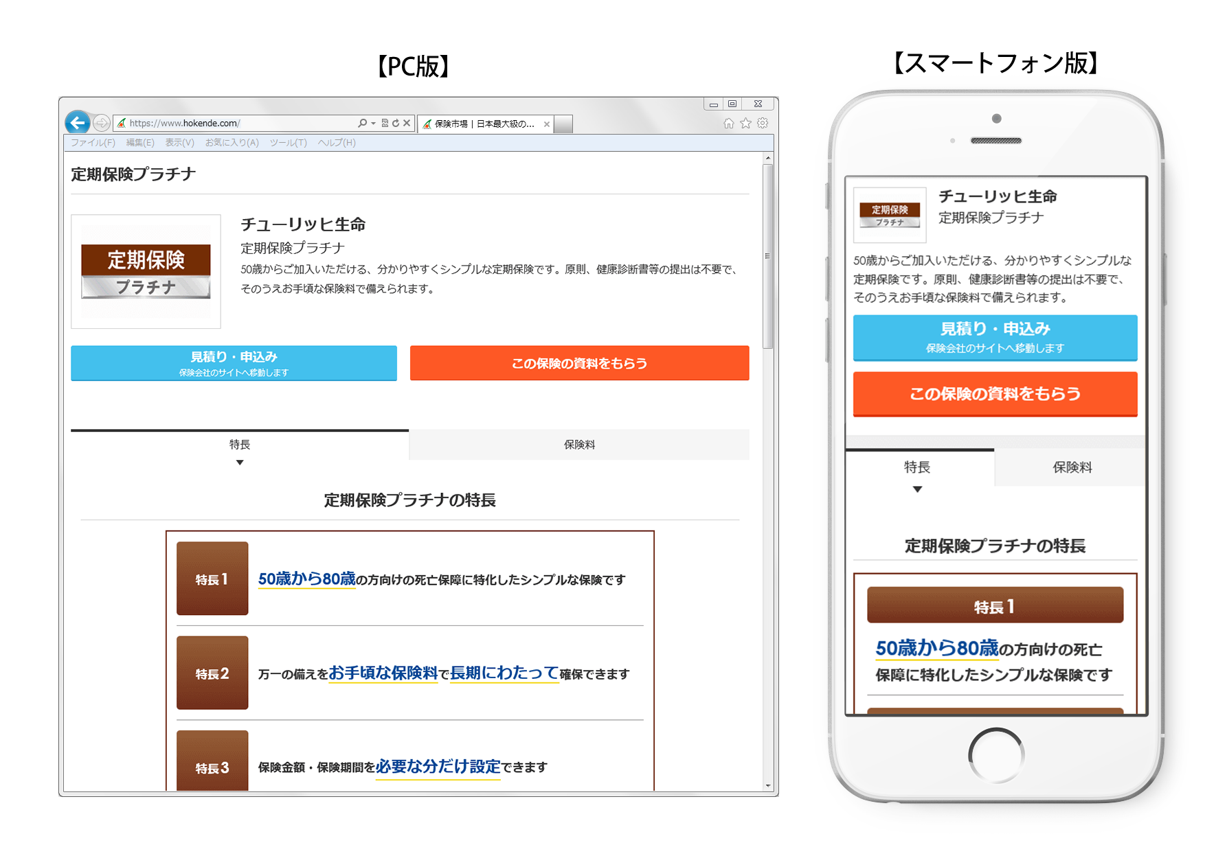 保険選びサイト「保険市場」に掲載を開始したチューリッヒ生命の『定期保険プラチナ』は、通信販売・対面販売・法人販売・インターネットでお申し込みいただける保険商品です。「保険市場」PCサイトおよびスマートフォンサイトにて、商品の詳細をご確認いただけます。