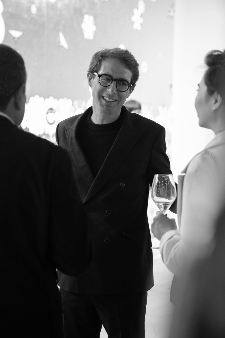 成功の象徴でもあるドン ペリニヨンの限定ボトルデザインを担当させていただけて、本当に光栄です。今日の会場である自身のギャラリーが、いつもとまったく違う装飾をしていただいて、まるで別の空間にいるような感覚でした。そしてドン ペリニヨン ロゼの味わいには驚きました。2010年のヴィンテージならではの熟成の深さがあって、時間の力を感じます。「人生の最期の日に家族と飲みたい」と思えるような、特別な一本でした。
