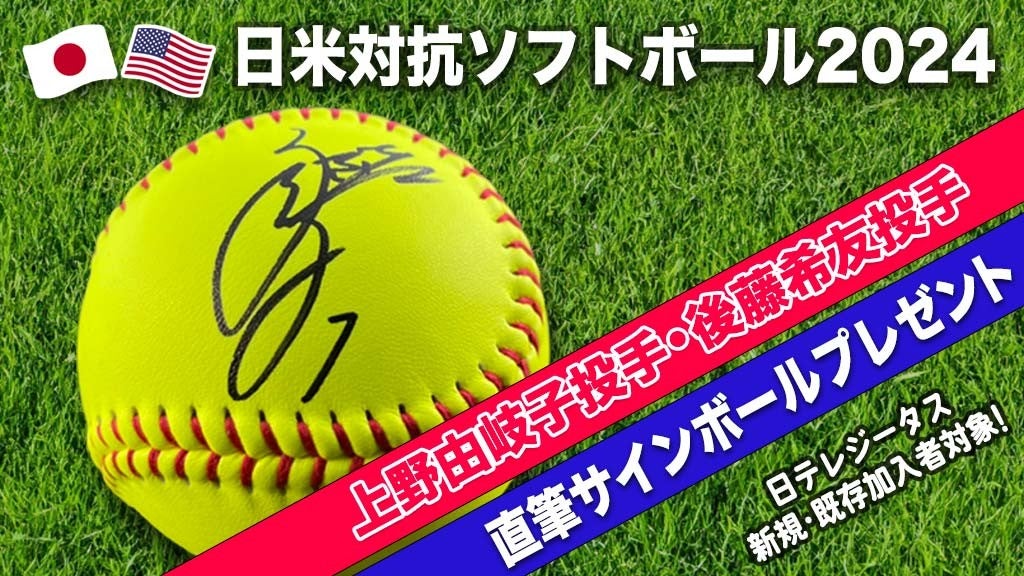 さらに「日米対抗ソフトボール 2024 日本×アメリカ」の放送を記念して、プレゼントキャンペーンを6/26(水)から開始!日本代表の上野由岐子投手と後藤希友投手の直筆サインボールを日テレジータスにご加入いただいている皆様を対象に、抽選で計6名様にプレゼントいたします!詳しくは、キャンペーンページをご確認ください。