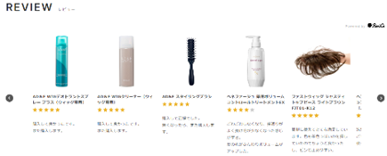 商品の購入時において、「口コミ」の件数や内容が重要な潮流となってきていることから、商品詳細ページだけでなく、トップページにも「レビュー欄」を追加し、人気商品が一目でわかりやすくなりました。