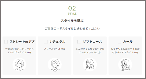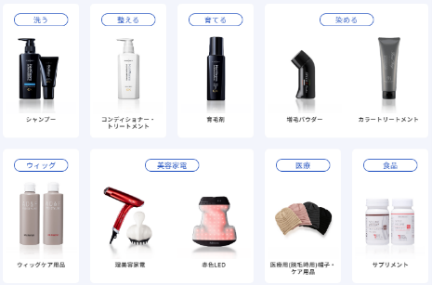 TOPページのバナー「MEN」「WOMEN」「WIG」からお入りいただくと、「洗う」「整える」など、お悩みや目的に合わせたキーワード別に商品をお選びいただけます。はじめてサイトを利用される方でも、数ある商品のなかから、最適な商品をお選びいただけます。