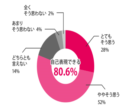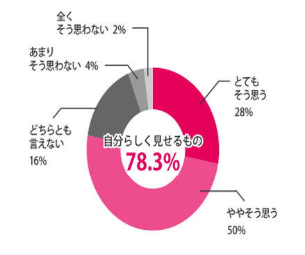 「自己表現ができる」は80.6%、「自分らしく見せる」は78.3%と、気分の変化を感じた人が7割を超えた。