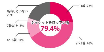 「お手持ちのジャケット所有数」に対し、7割以上が「1着以上持っている」と回答。ジャケットを着用する女性「#ジャケジョ」が多く、ジャケットが愛用されていることが示唆された。