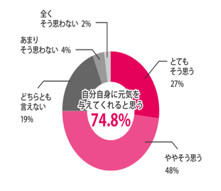 「ファッションが与える影響」についての質問に対し、「自分自身に元気を与える」と回答した人は74.8%、