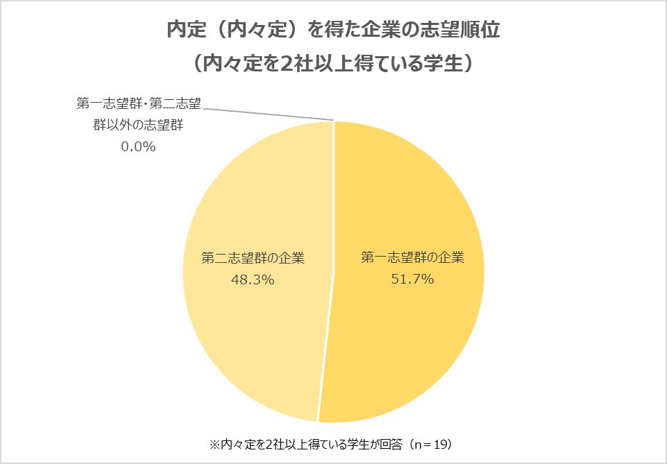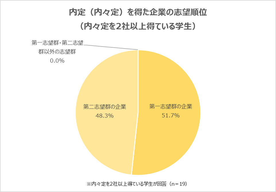 (1)2社以上内々定を得ている学生は、志望度の高い企業から内々定を得ている傾向。