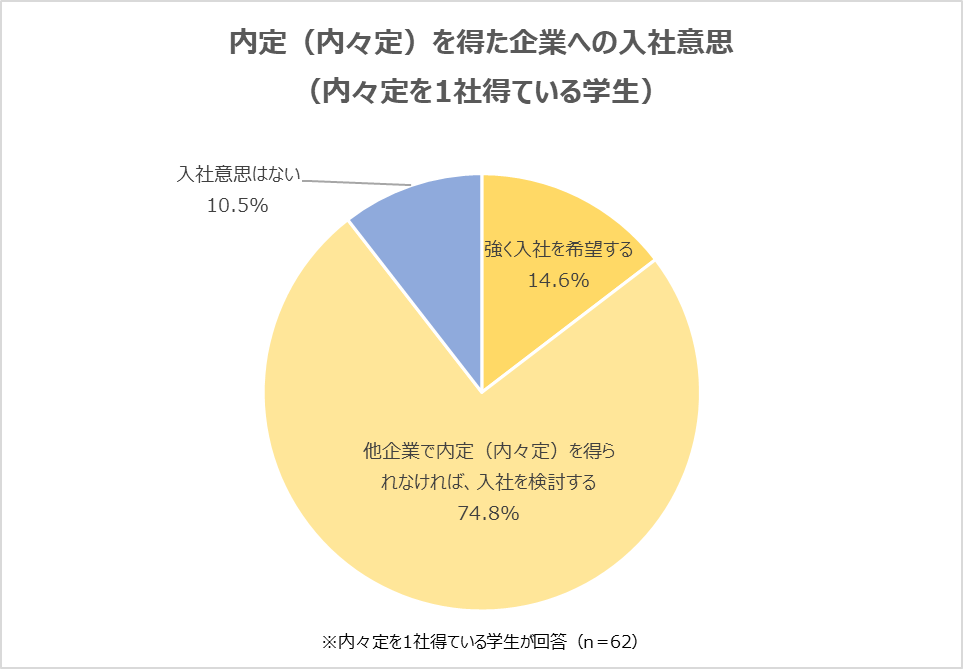 (2)1社から内々定を得ている学生は、約7割が「他の企業で内々定を得られなければ、入社を検討する」と回答