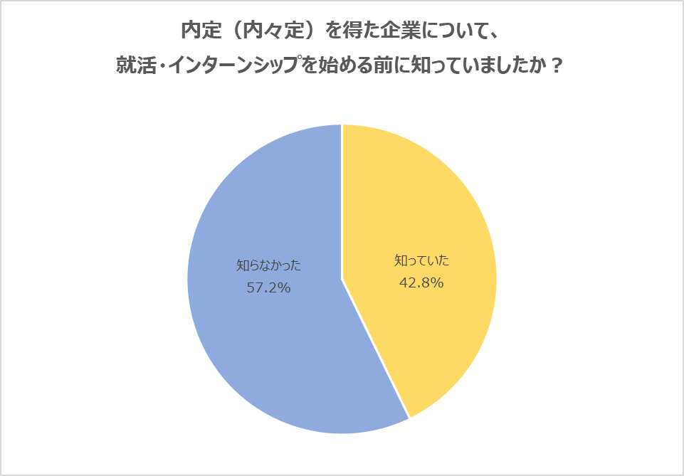 (3)内々定を得た企業について、4割以上が「就活・インターンシップを始める前に知っていた」と回答